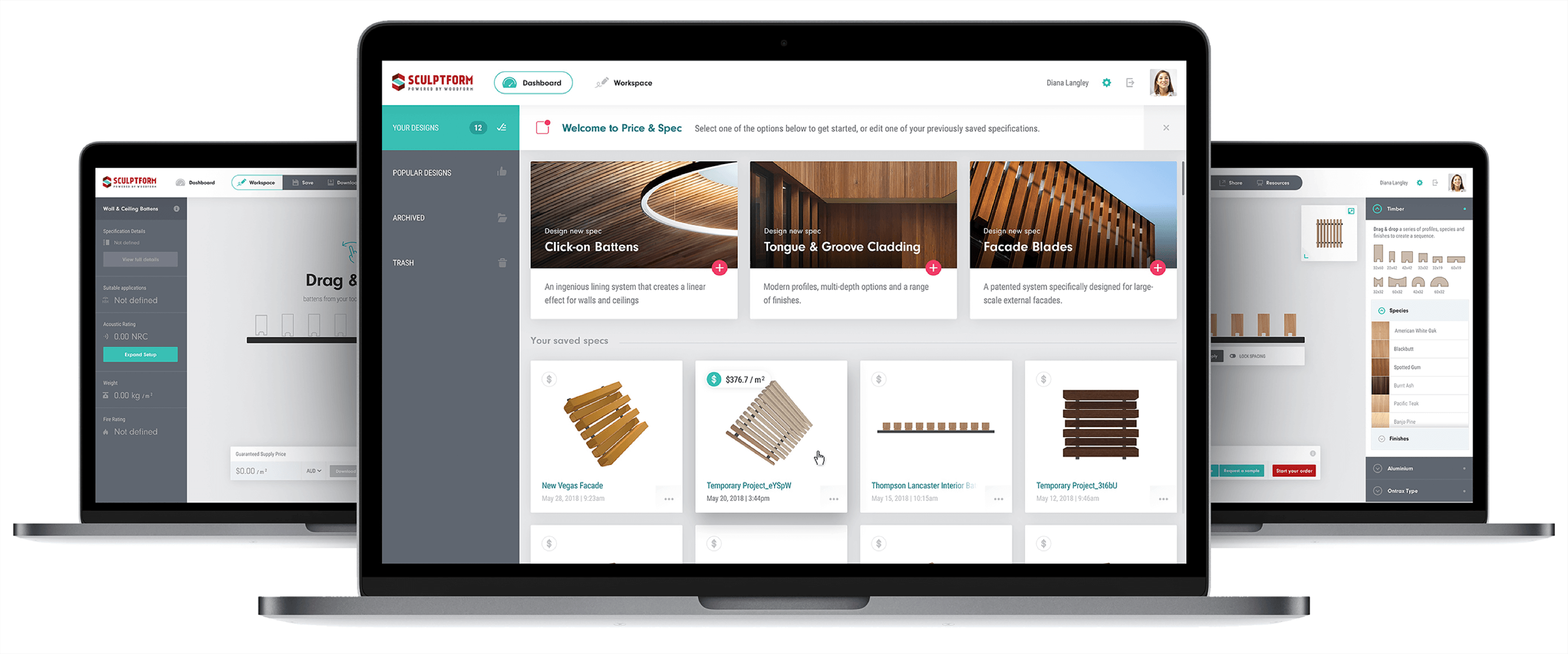 A refreshed design for the Price & Spec tool, Sculptform’s signature software, makes it a snap for architects and builders to specify quickly and on budget. Clear specifications allows them to accurately price designs and ensure they meet other key considerations like safety ratings and noise control.