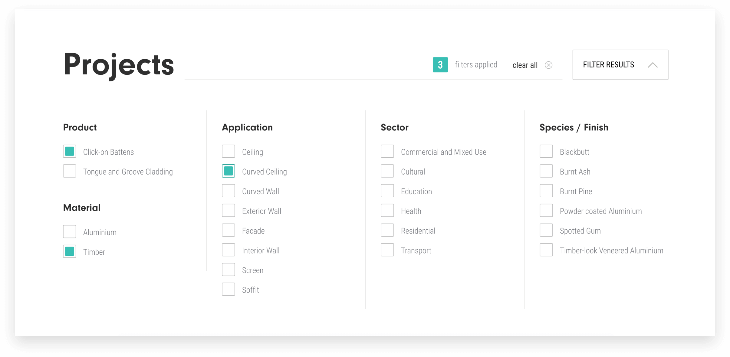 Architects on the hunt for design inspiration can now easily filter projects by product, material, application, sector, species, or finish.