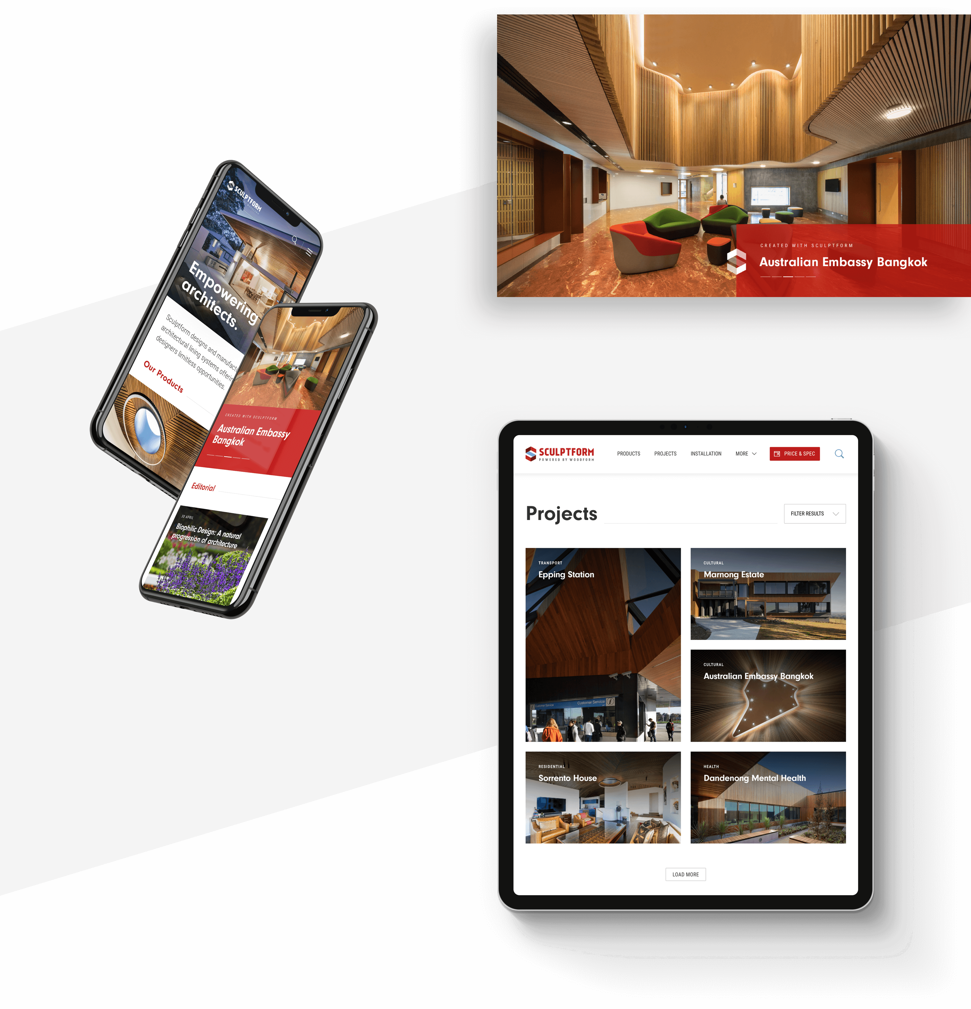Ready to evolve as a brand, Sculptform shed its former moniker, Woodform Architectural, and enlisted us to reimagine their web presence.
