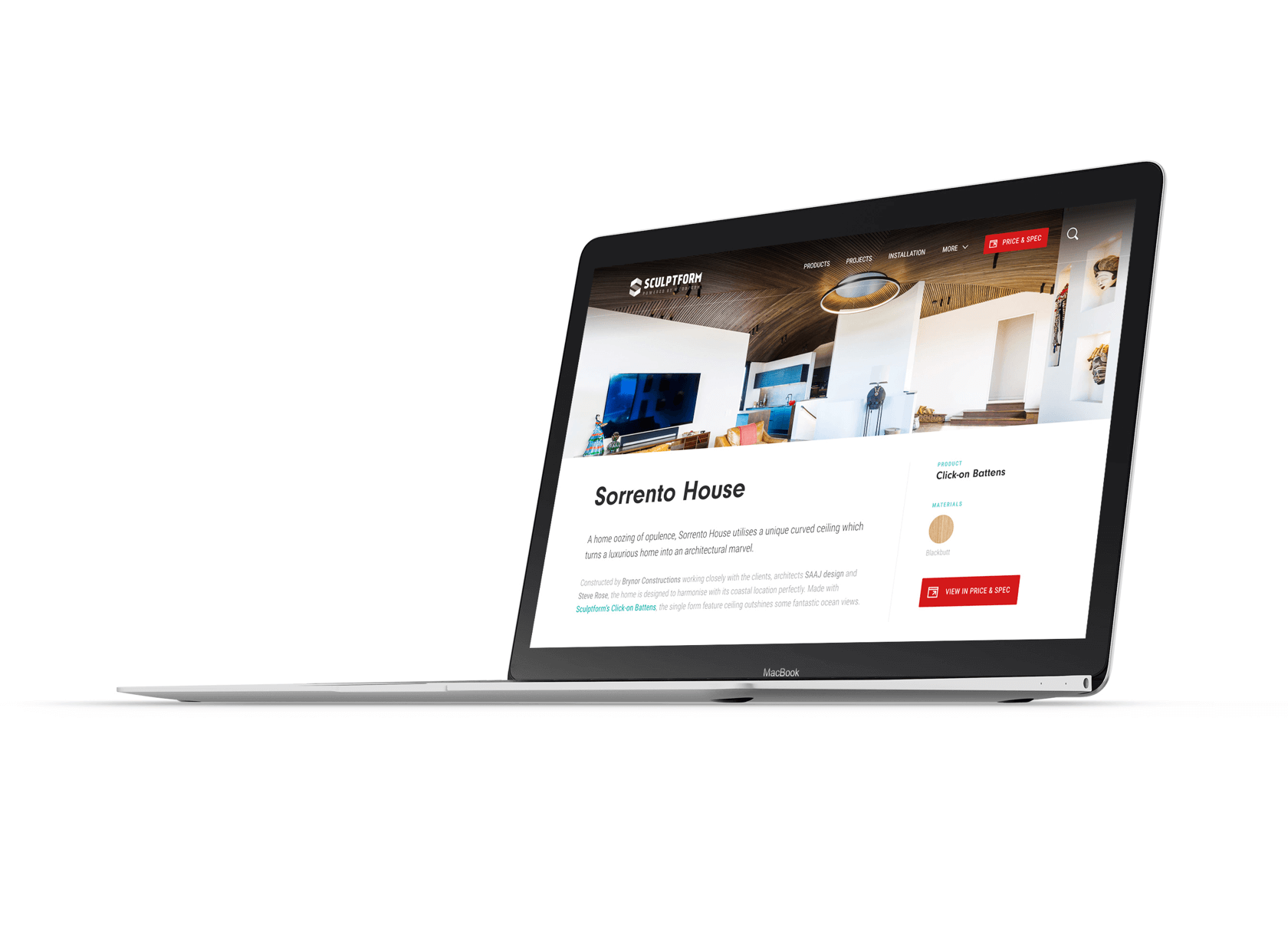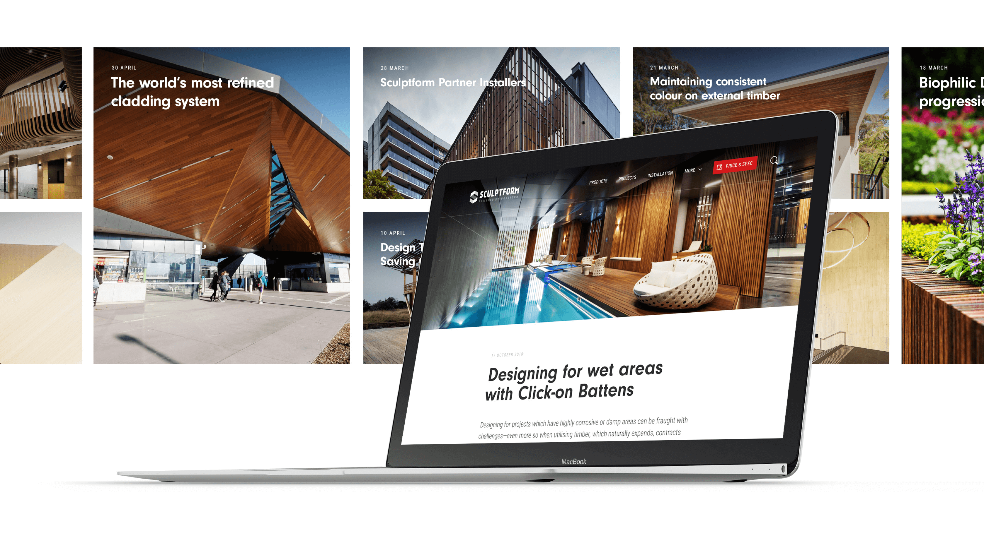 Sculptform takes the boring out of blank walls and ceilings. We put their architectural products front and centre on a new, dressed-up website.